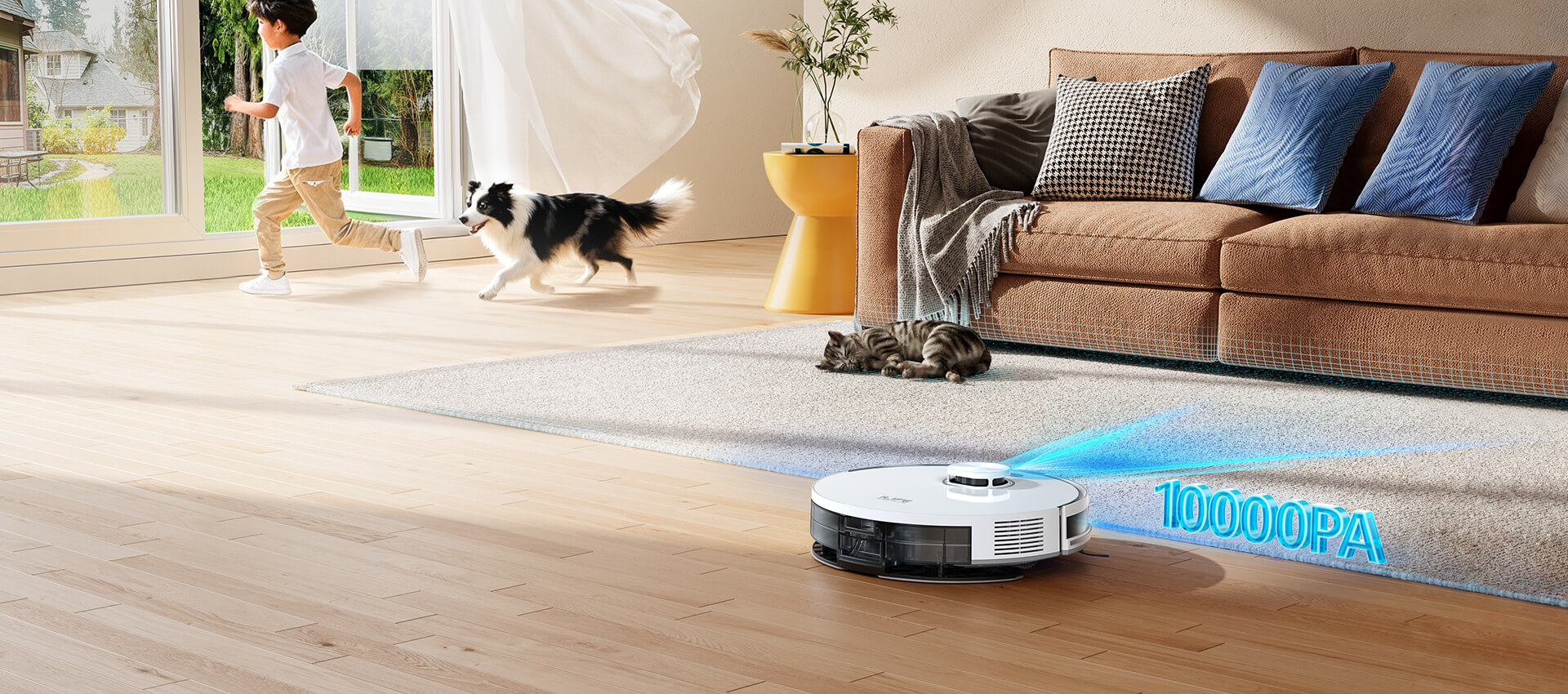 Equipped with a high-power brushless motor, the robot delivers a massive 10000Pa suction to remove dust, debris, and embedded dirt in a single pass—ideal for carpets, hard floors, and pet homes.