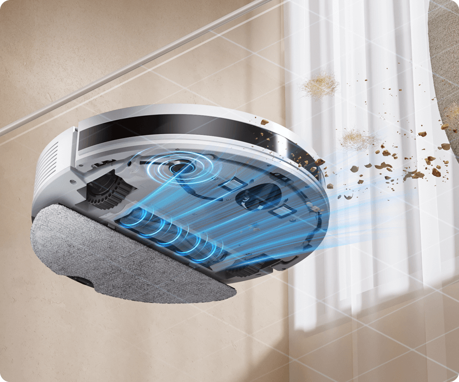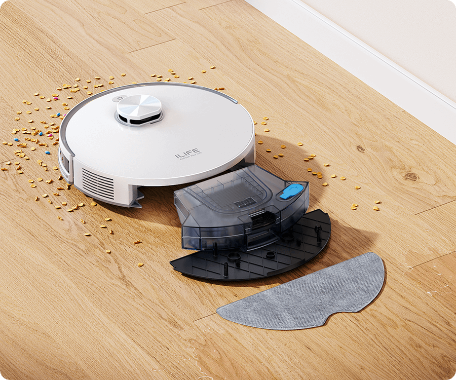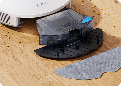 The integrated dustbin and water tank allow the robot to vacuum and mop simultaneously, capturing fine dust while wiping away light stains for fresher floors.